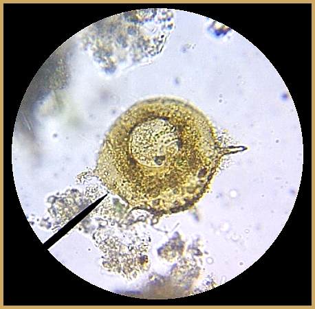 Since Shelled Amoebas are not filter feeders, they depend on their ability to hunt and seek out food. So, a Shelled Amoeba on its back will starve unless it finds some way to right itself. It has a way. It generates an air bubble on one side of the shell. This bubble raises that side so the creature now sits on its opposite side, like a coin on edge. It then extends and attaches its pseudopods to the solid bottom and pulls itself over. Ready to proceed once again as a hunter.